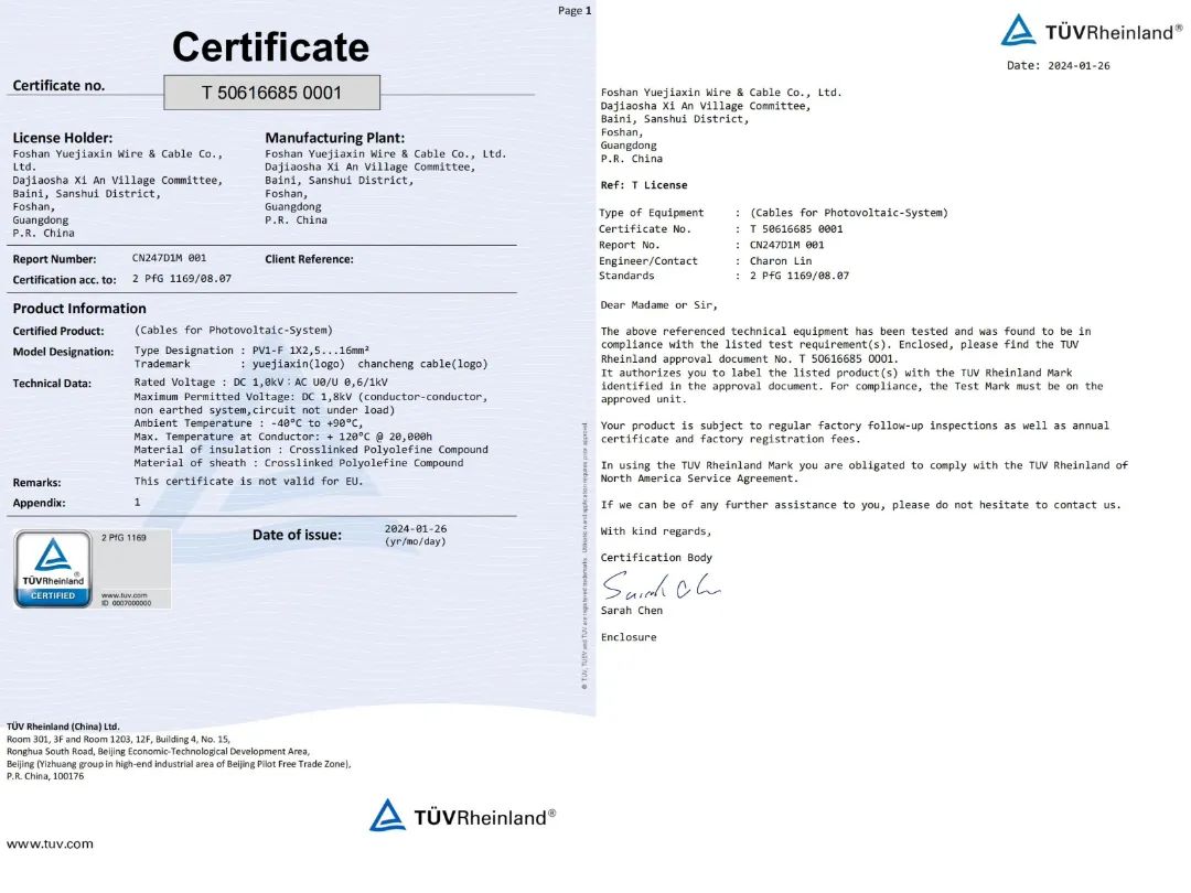 光伏線認證 2 PFG 1169